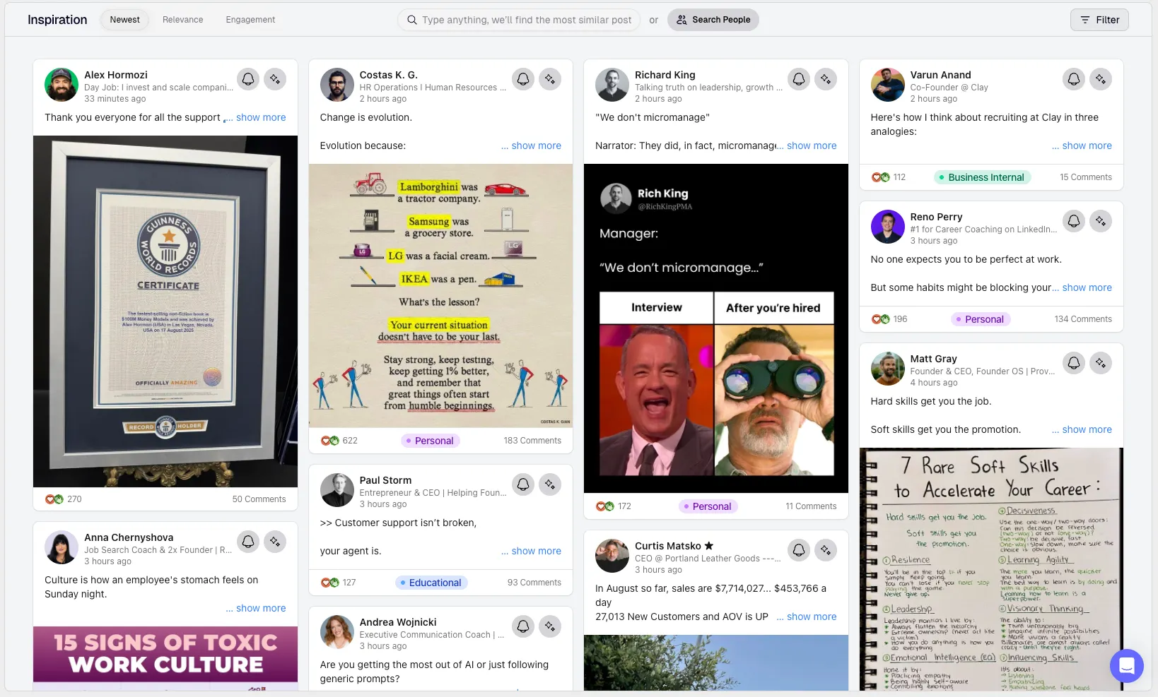 You can use the inspiration feature to surface viral posts from other creators. You don’t copy them, but you can use them as a springboard for your own ideas. It’s like curating a swipe file in real time.
